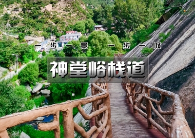 神堂峪栈道起于不夜谷内,延绵至神堂峪景区。栈道一直顺着雁栖河和公路,设计独特,纯木铺建,根据地形走势,有平坦的舒适,也有登高眺远的开阔,在雁栖湖两岸逶迤穿行;分别有川谷览秀、太公溪钓、东湾汇德、绿廊水吟,神堂柳堤,临空听泉,九曲听琴,揽胜通幽,关山竞秀,七仙指路,仙翁拜水,山野澄怀,石趣天成,绝壁盘龙,石片廊桥等景观节点。