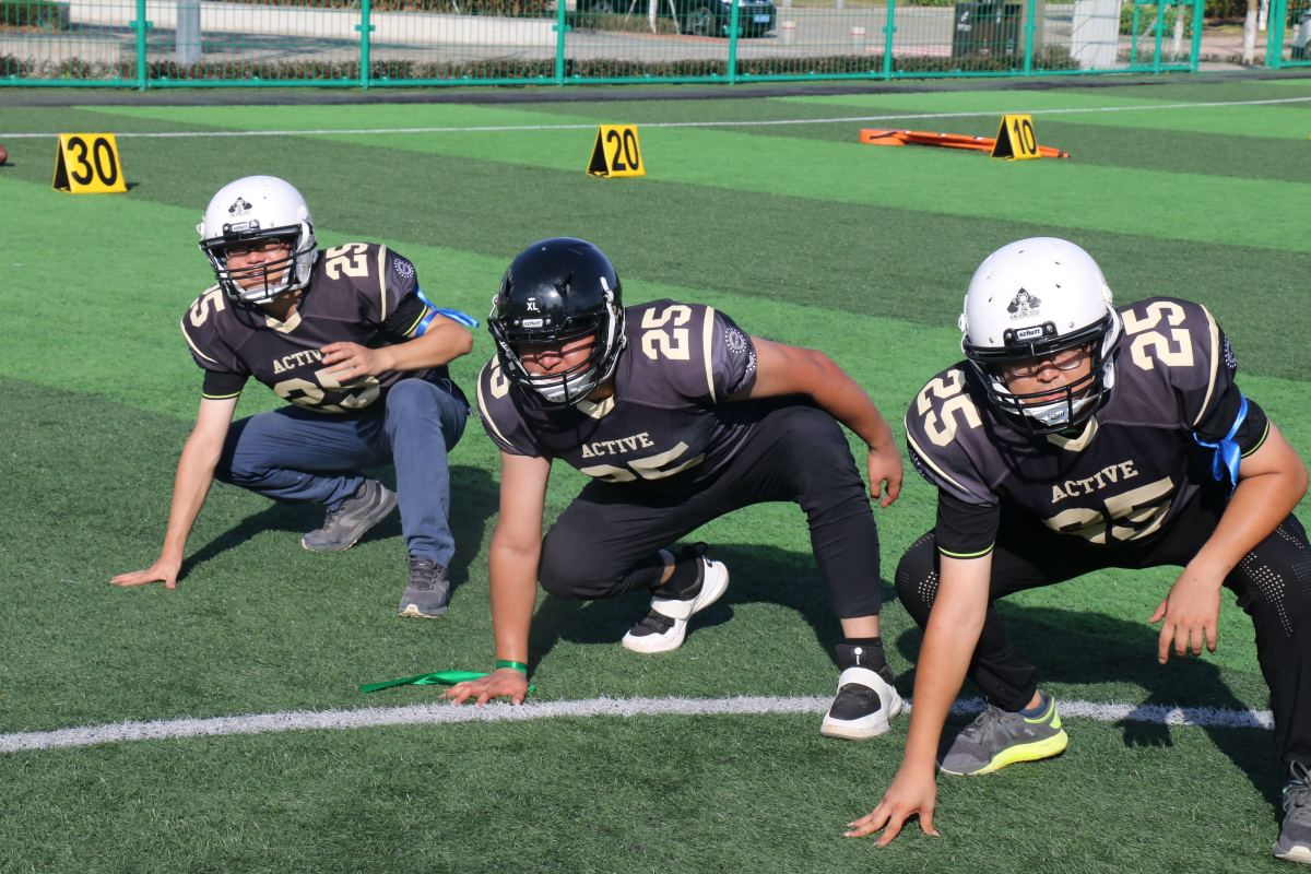 基础技能练习:初步认知专业装备,讲解安全注意事项;橄榄球位置及技术初步学习,在过程中设立不同程度的挑战,训练总结;灌输团队概念。
