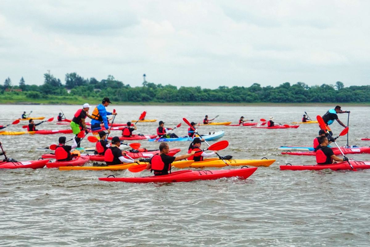 皮划艇是户外运动,在夏天阳光强烈的日子里,水面的反光强烈,对皮肤有一定伤害,最好事先涂上防晒霜,准备好防晒物品。