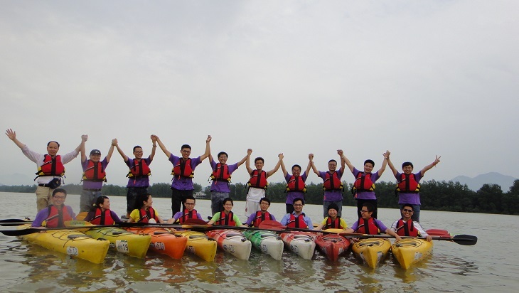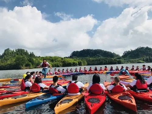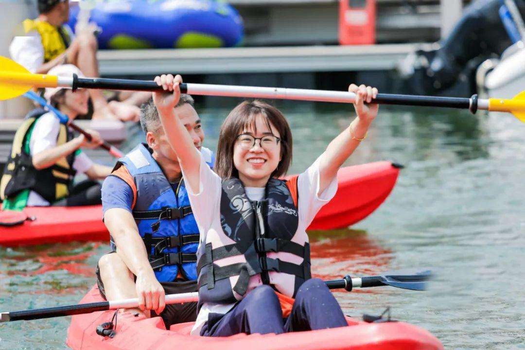 在教练专业讲解后,由队长带领各队成员,到指定水域练习皮划艇的基本技巧,团队成员间在练习的过程中相互帮助、取长补度、共同进步,掌握基本的皮划艇技巧的同时,还可以增进成员间的感情,是彼此更加了解。