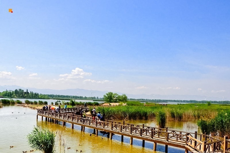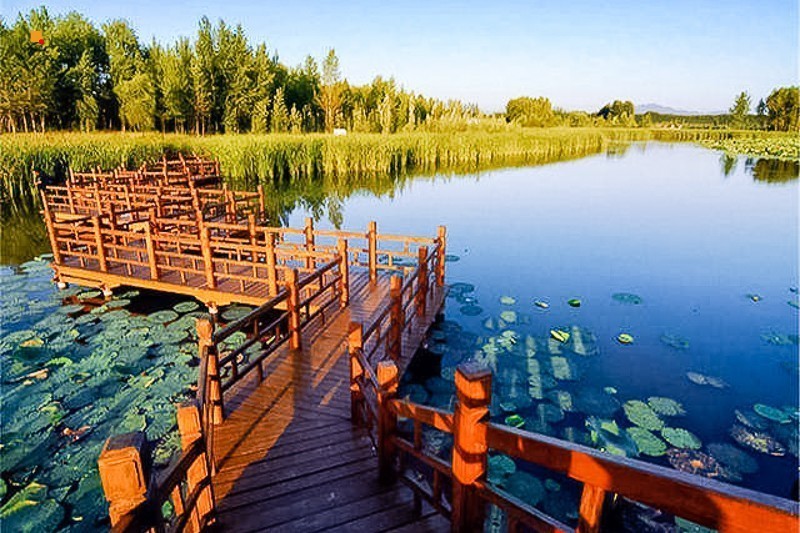 这里也是华北地区最大的湿地公园。水草芦苇丰茂,风吹过的时候,非常漂亮,公园沿途有亲水木站台,鸟岛,湿地观景台,望湖楼,西保护站,观鹤台,湿地百草原等特色景点。