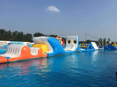 水上智勇大冲关是集勇气、耐力和激情于一体的水上冲关赛道,内含水上平衡木、双向滑梯、贝壳山、跨栏等20多种水上项目,当踏上赛道,便是一次没有回头路的挑战! 落水后如何迅速爬起? 如何健步如飞地通过障碍,极速前进? 看似简单的小关卡 却需要每个团队成员的大默契!